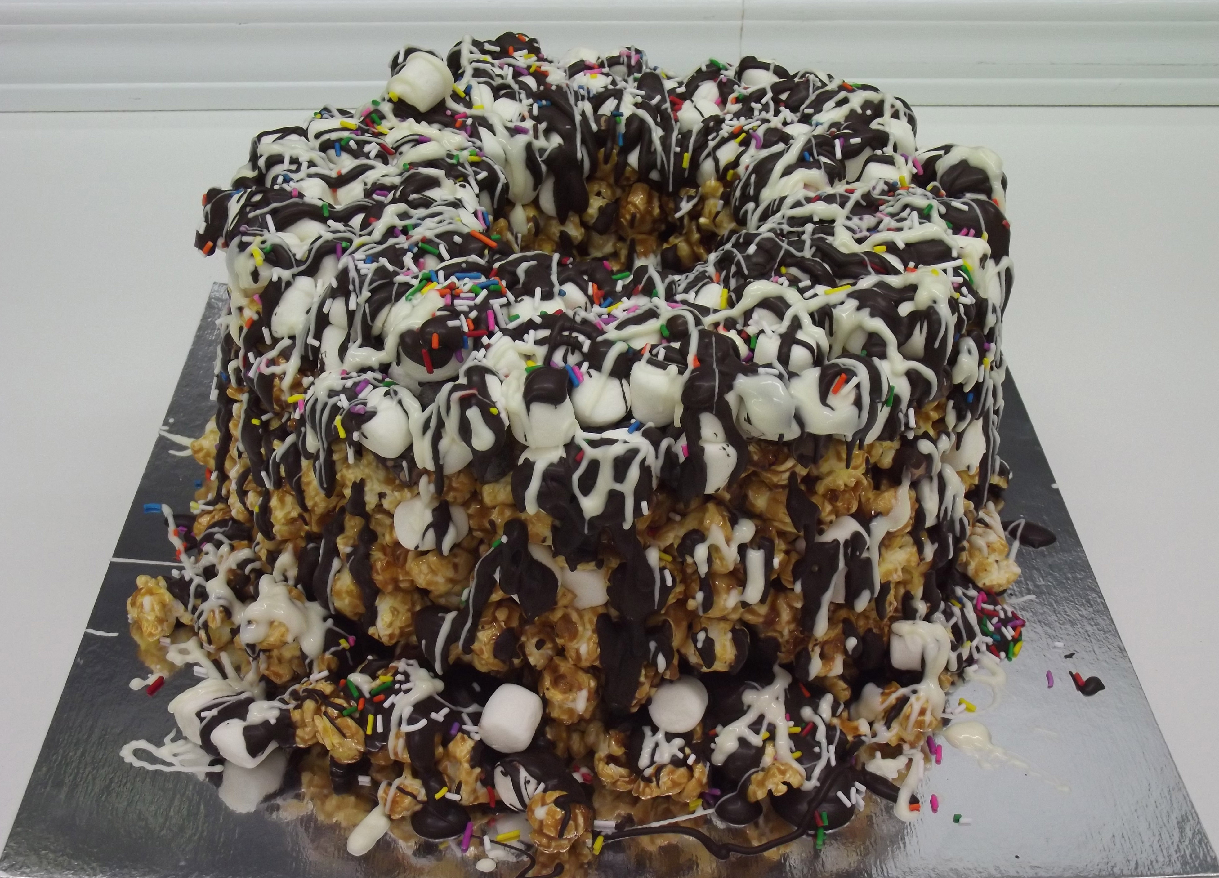 Pour les mordus de popcorn, Gourmaïs a aussi développé un gâteau presque exclusivement fabriqué de maïs soufflé. De plus, c’est une idée parfaite qui sort de l’ordinaire pour les gens sensibles au gluten! Un gâteau sans gluten qui sort des sentiers battus.